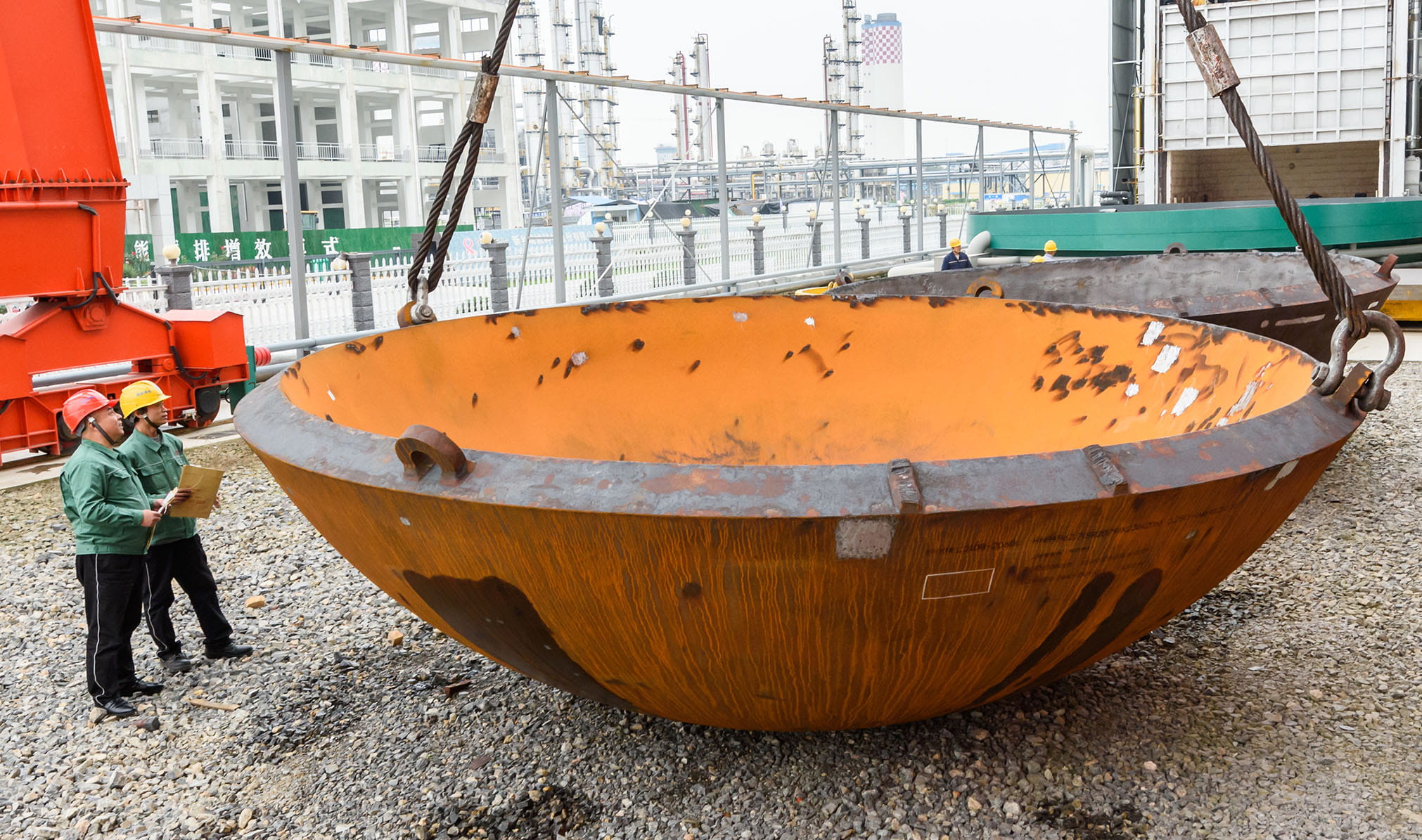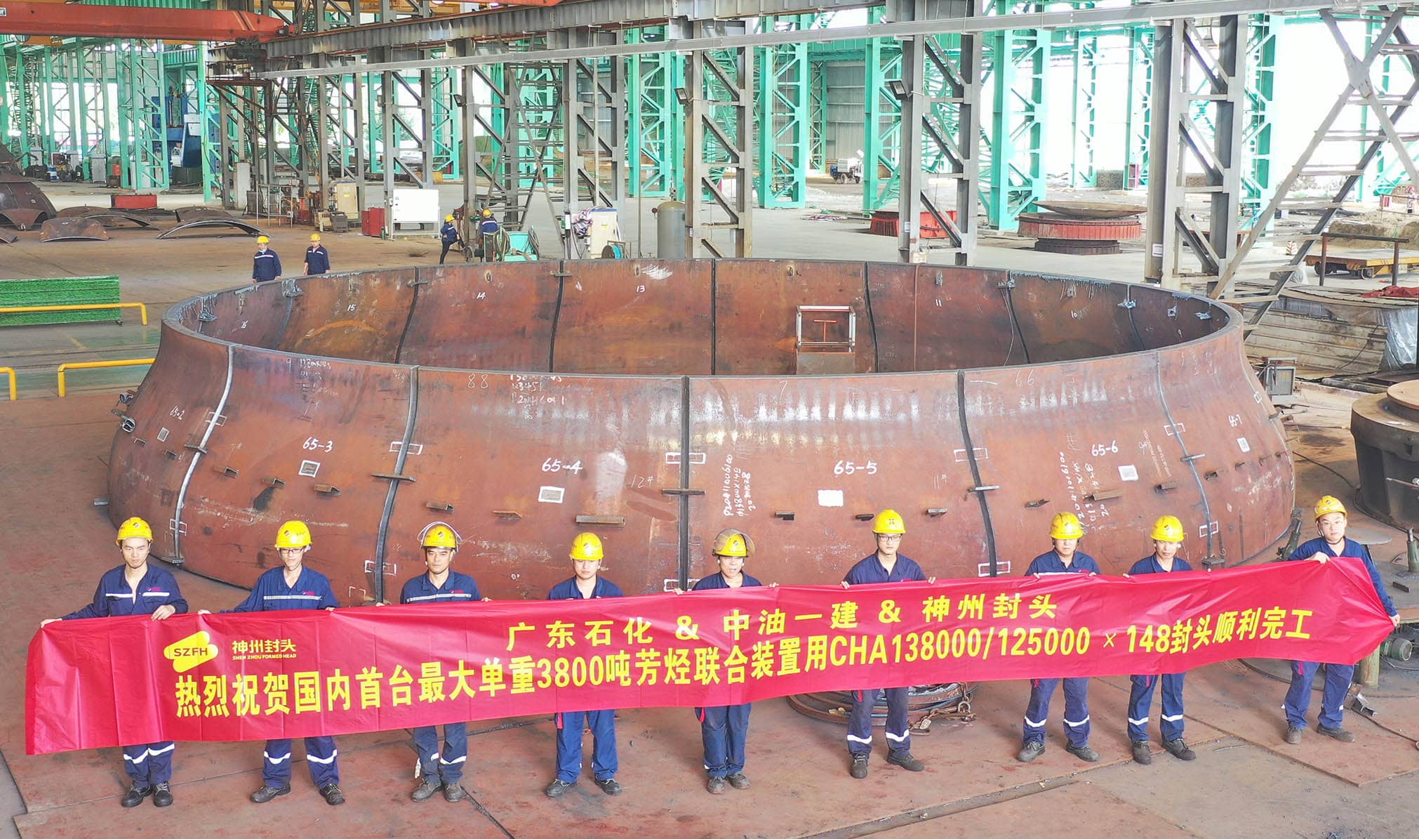 從最初500T壓機,靠一錘一錘砸出封頭的小作坊,到現(xiàn)在直徑7500mm,厚度400mm以下整體一次成型,